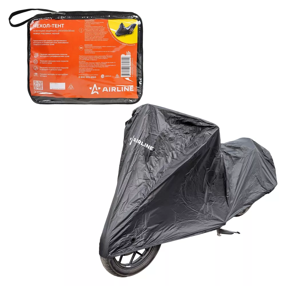 Купить в Омске ADMC012 Чехол-тент на мотоцикл защитный L (250х100х120см), люверс под замок, черный производитель Airline Выгодные цены и быстрая доставка - Применимость и аналоги - Cкидки и акции