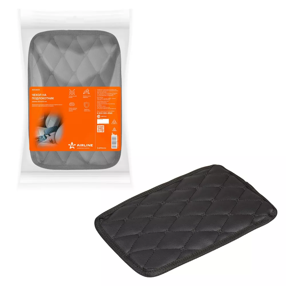 Чехол на подлокотник, универсальный, 200*300 мм, стёганная экокожа, цвет черный