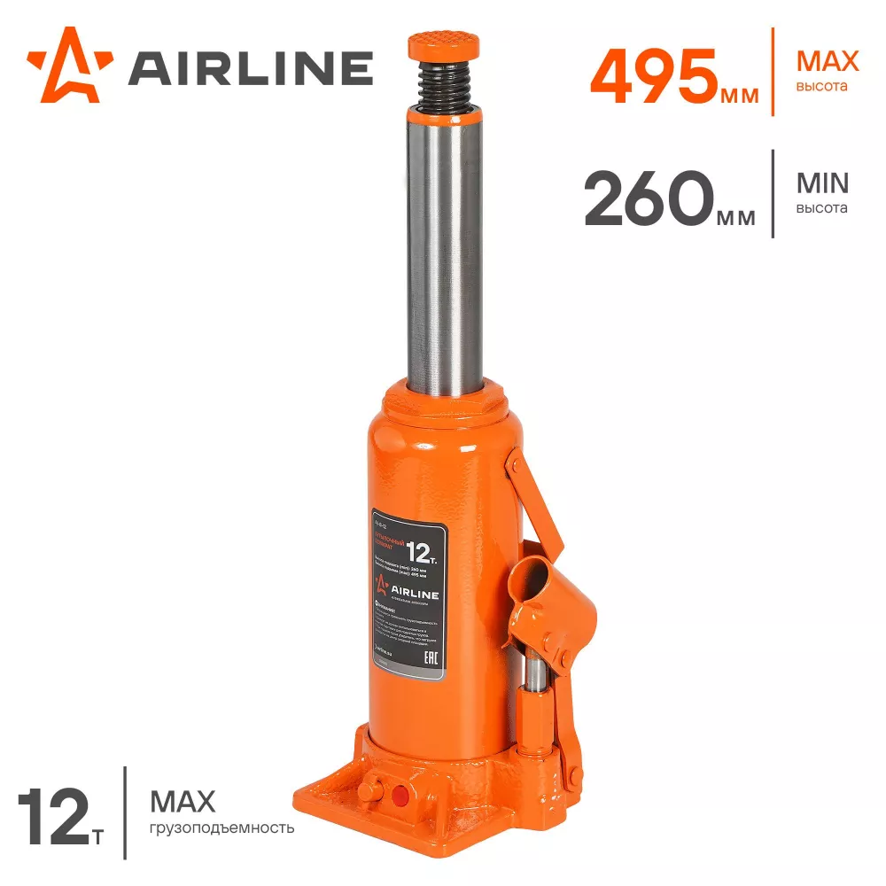 Домкрат бутылочный 12т 260-495мм PRO