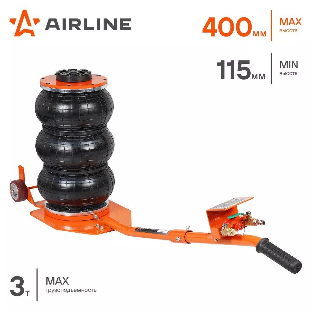 Домкрат пневматический 3т 150-400мм, подкатной, 3 секции, длин. ручка