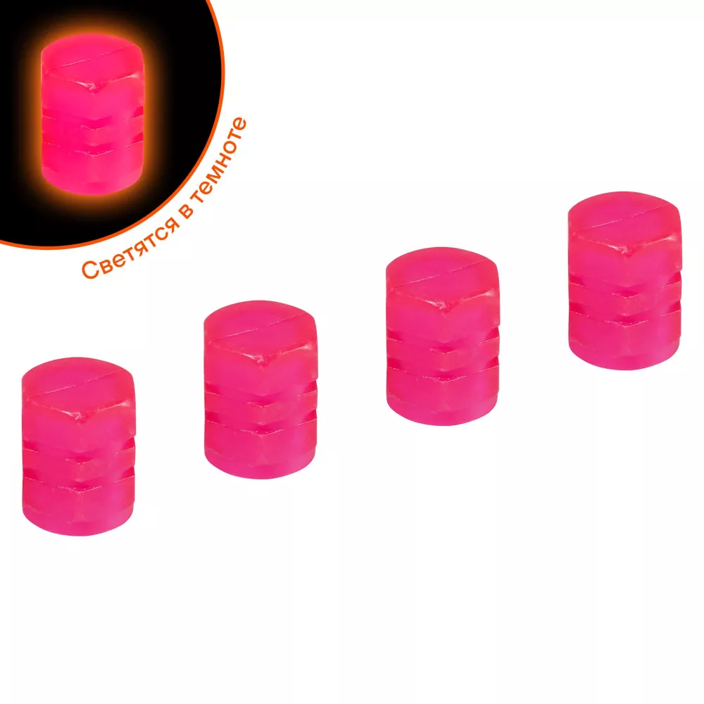 Колпачки на шинный вентиль S-1, светящиеся, розовые, ABS-пластик, 4 шт.