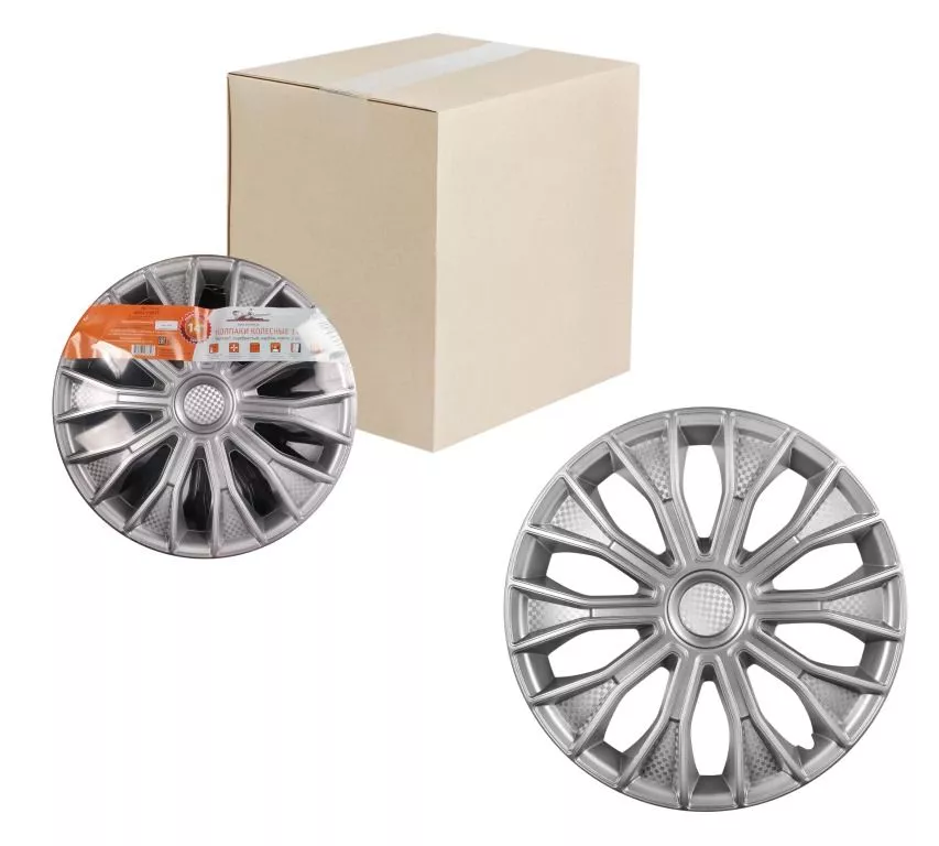 Колпаки колесные 16" "Волтек", серебристый, карбон, компл. 2 шт.