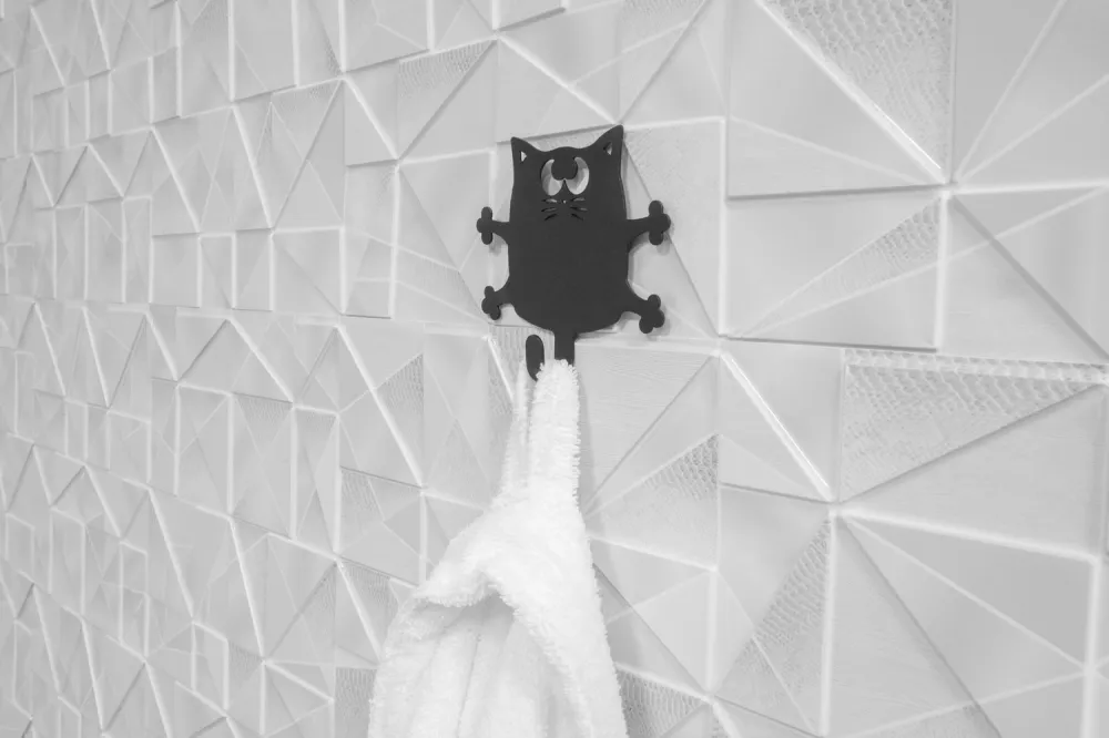 Крючок "Кот Кузя" для ванной комнаты, черный (сталь)