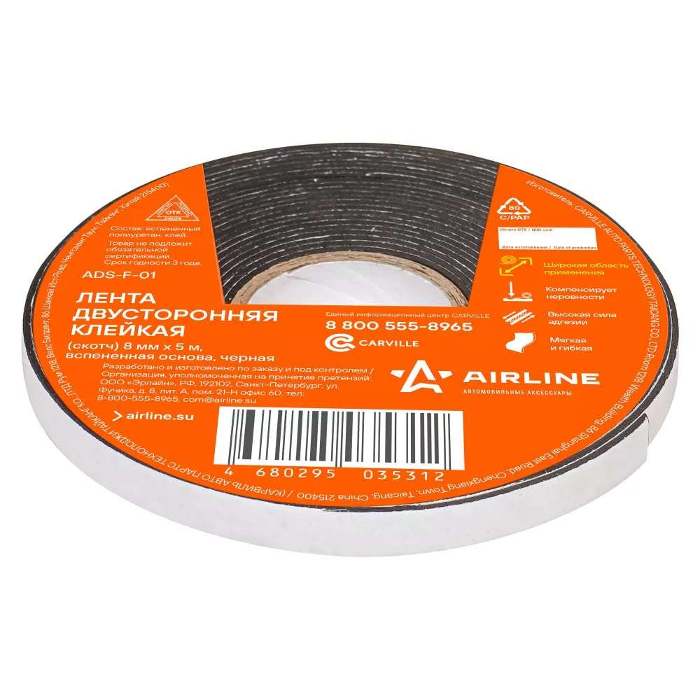 Купить в Омске ADSF01 Лента двусторонняя клейкая (скотч), 8мм*5м, EVA вспененная основа, черная производитель Airline Выгодные цены и быстрая доставка - Применимость и аналоги - Cкидки и акции