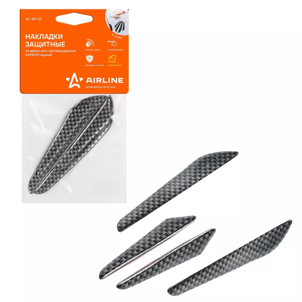 Купить в ACSD01 Накладки защитные на двери авто, противоударные, черн. карбон, 4 шт. производитель Airline Выгодные цены и быстрая доставка - Применимость и аналоги - Cкидки и акции