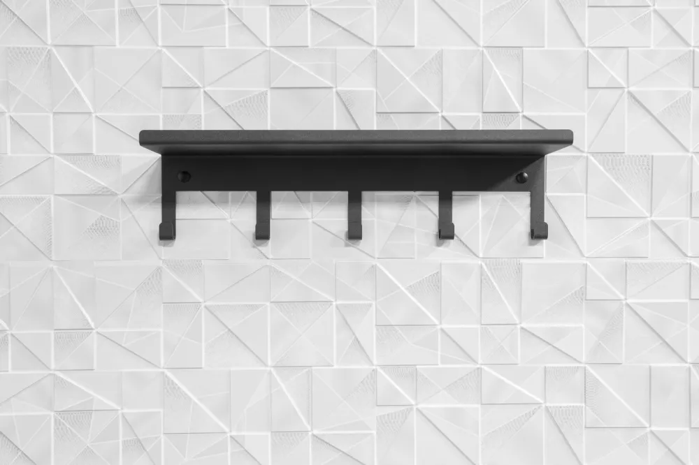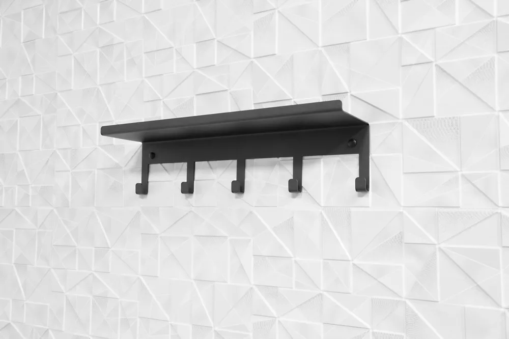 Полка с крючками (5 шт.) для ванной комнаты, черная (сталь)