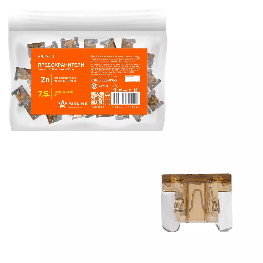Купить в Омске AFUMK13 Предохранители "микро" 7,5A в пакете 50шт. производитель Airline Выгодные цены и быстрая доставка - Применимость и аналоги - Cкидки и акции