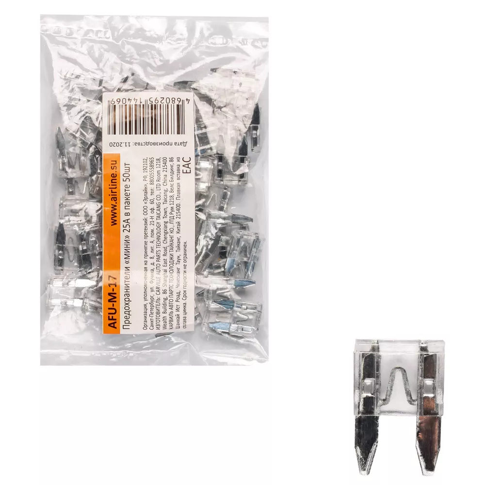 Купить в Омске AFUM17 Предохранители "мини" 25A в пакете 50шт. производитель Airline Выгодные цены и быстрая доставка - Применимость и аналоги - Cкидки и акции