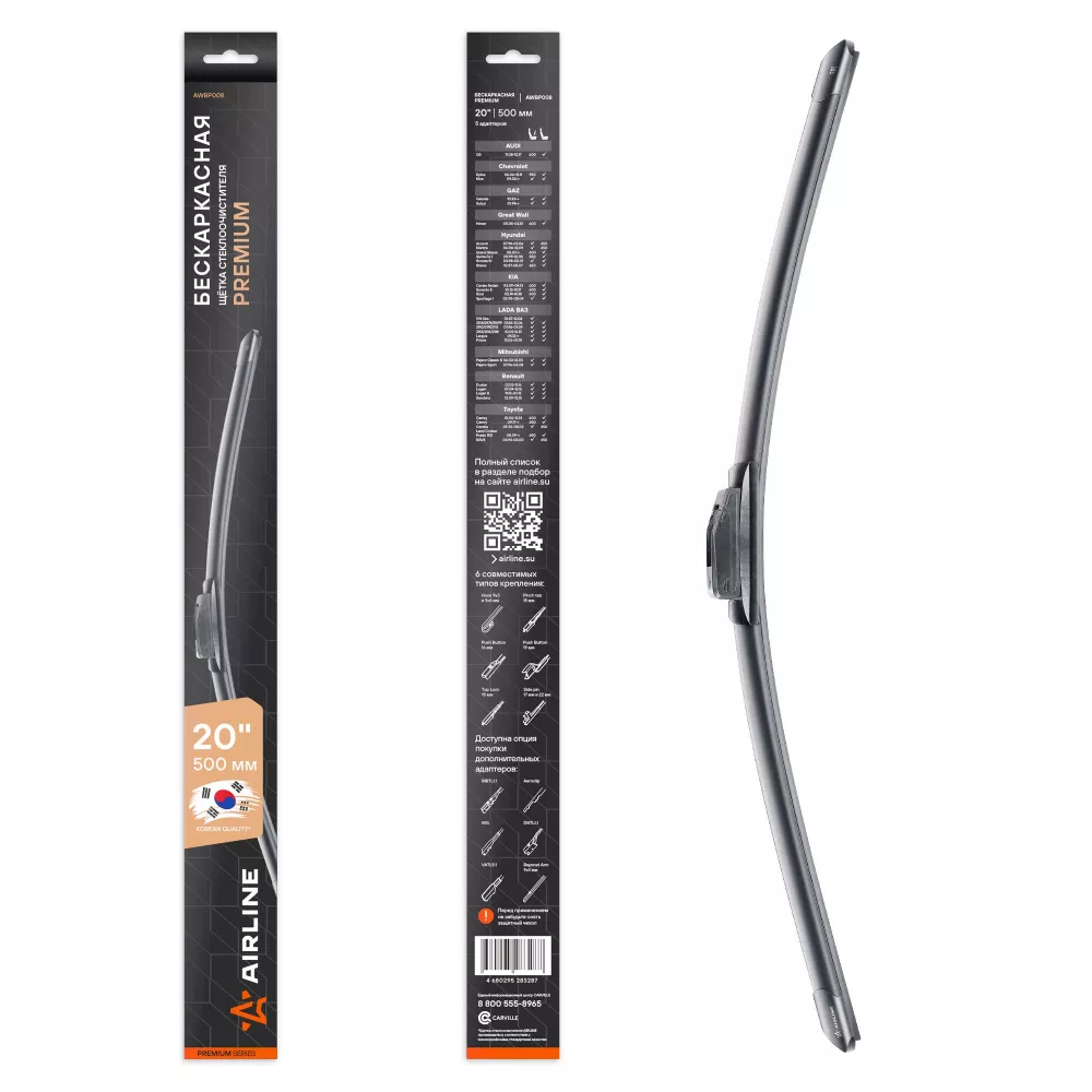 Купить в Омске AWBP008 Щетка стеклоочистителя бескаркас PREMIUM 500мм (20") 5 адаптеров производитель Airline Выгодные цены и быстрая доставка - Применимость и аналоги - Cкидки и акции