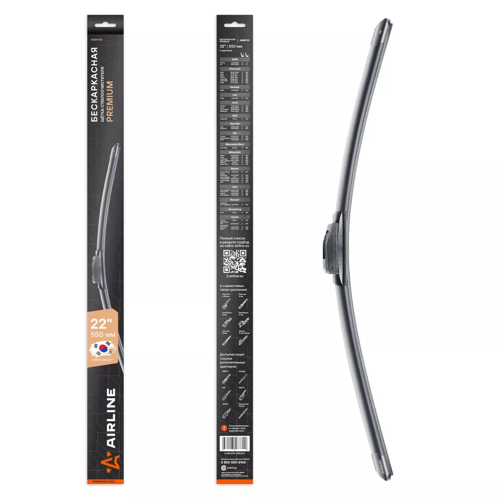 Купить в Омске AWBP010 Щетка стеклоочистителя бескаркас PREMIUM 550мм (22") 5 адаптеров производитель Airline Выгодные цены и быстрая доставка - Применимость и аналоги - Cкидки и акции