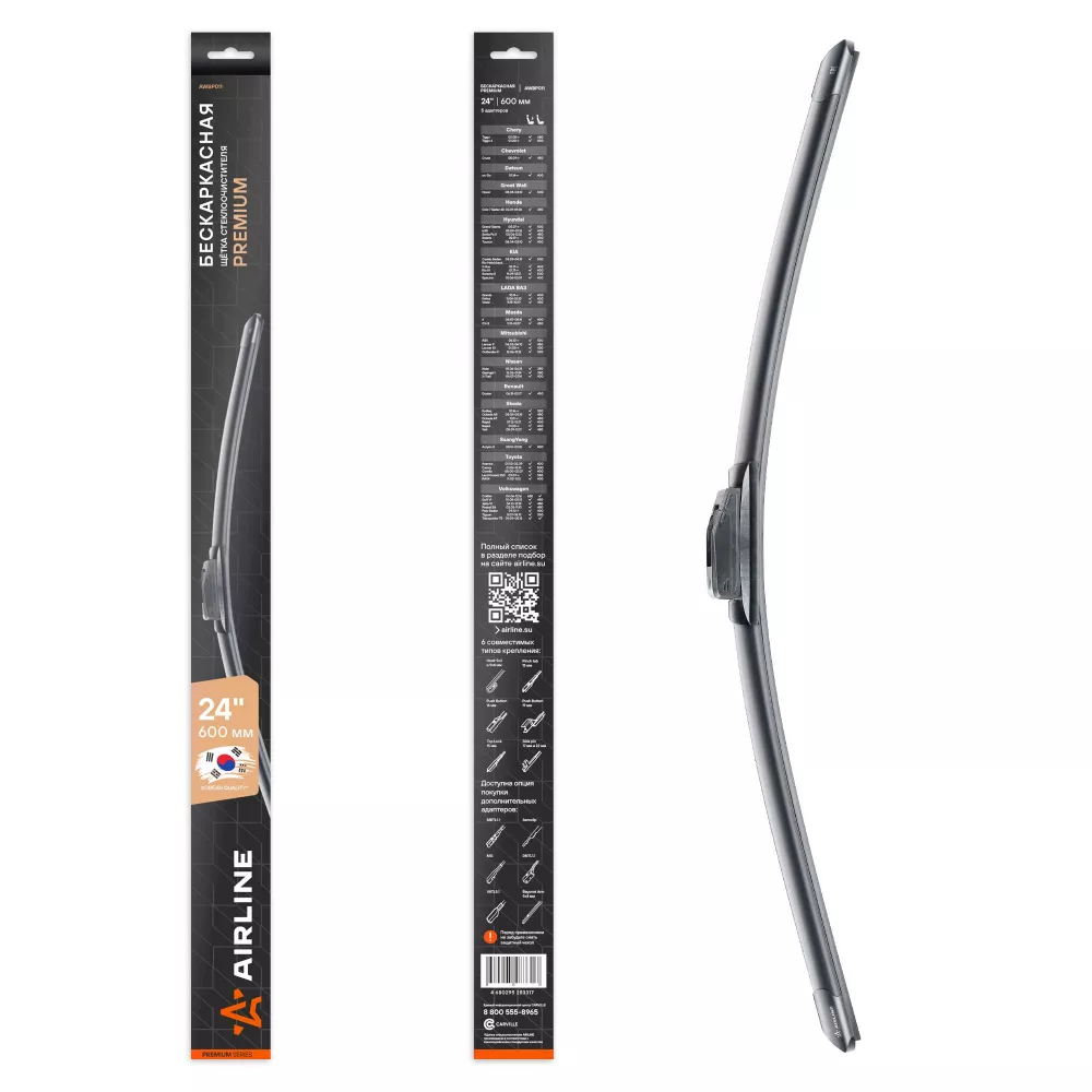 Купить в Омске AWBP011 Щетка стеклоочистителя бескаркас PREMIUM 600мм (24") 5 адаптеров производитель Airline Выгодные цены и быстрая доставка - Применимость и аналоги - Cкидки и акции