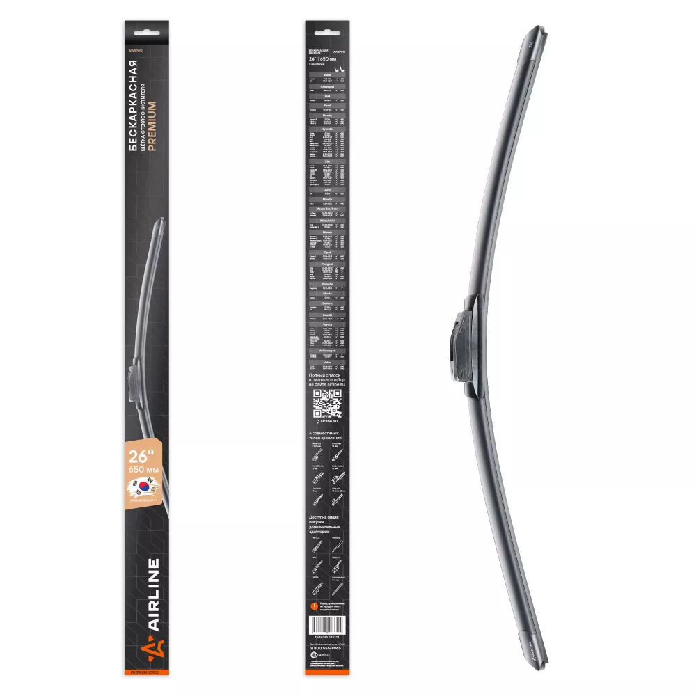Купить в Омске AWBP012 Щетка стеклоочистителя бескаркас PREMIUM 650мм (26") 5 адаптеров производитель Airline Выгодные цены и быстрая доставка - Применимость и аналоги - Cкидки и акции