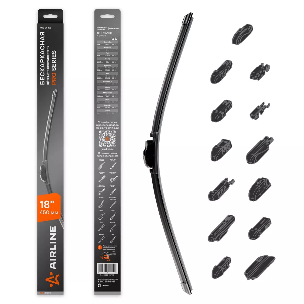 Купить в Омске AWBBK450 Щетка стеклоочистителя бескаркас PRO 450мм (18") 13 адаптеров производитель Airline Выгодные цены и быстрая доставка - Применимость и аналоги - Cкидки и акции