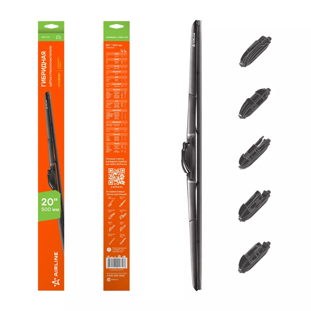 Купить в Омске AWBH510 Щетка стеклоочистителя гибрид 500мм (20") 3 адаптера производитель Airline Выгодные цены и быстрая доставка - Применимость и аналоги - Cкидки и акции