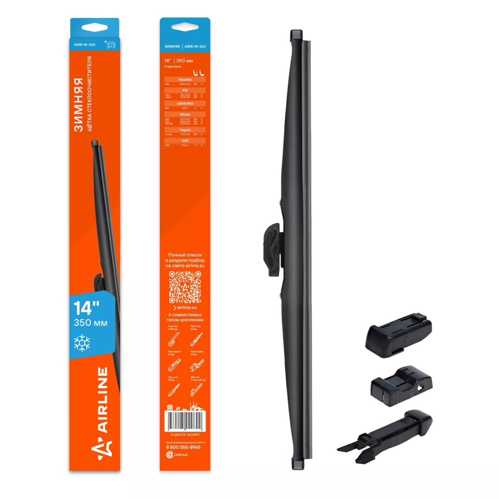 Щетка стеклоочистителя зимняя 350мм (14") 5 адаптеров