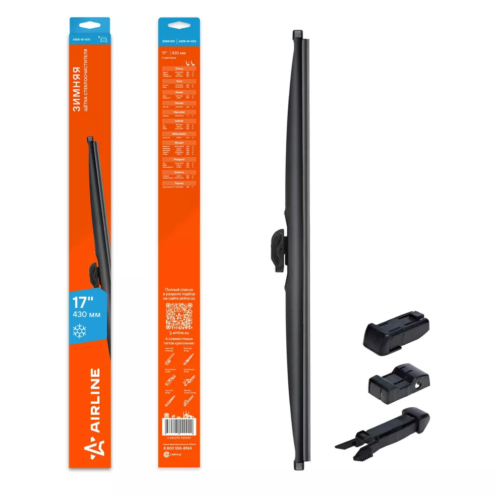 Щетка стеклоочистителя зимняя 430мм (17") 5 адаптеров