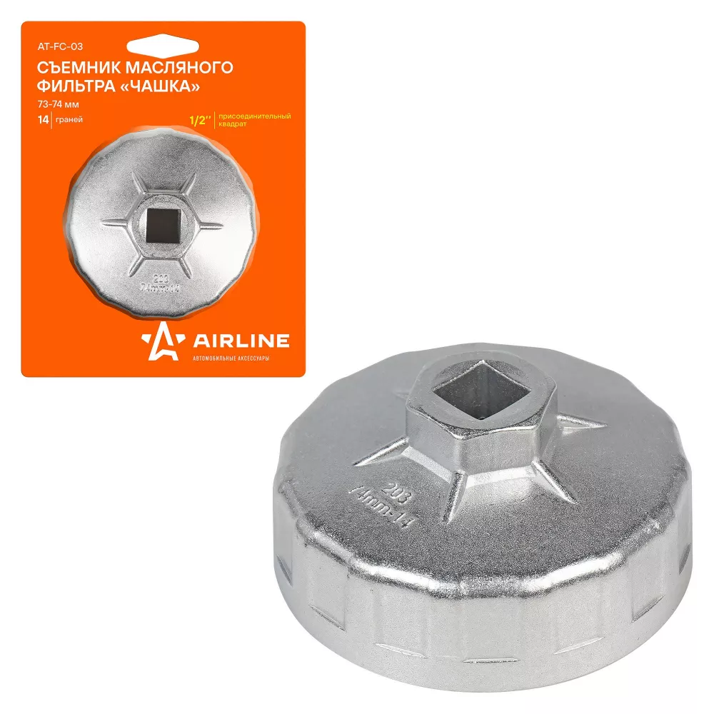 Купить в ATFC03 Съемник масляного фильтра "Чашка" 73-74 мм производитель Airline Выгодные цены и быстрая доставка - Применимость и аналоги - Cкидки и акции