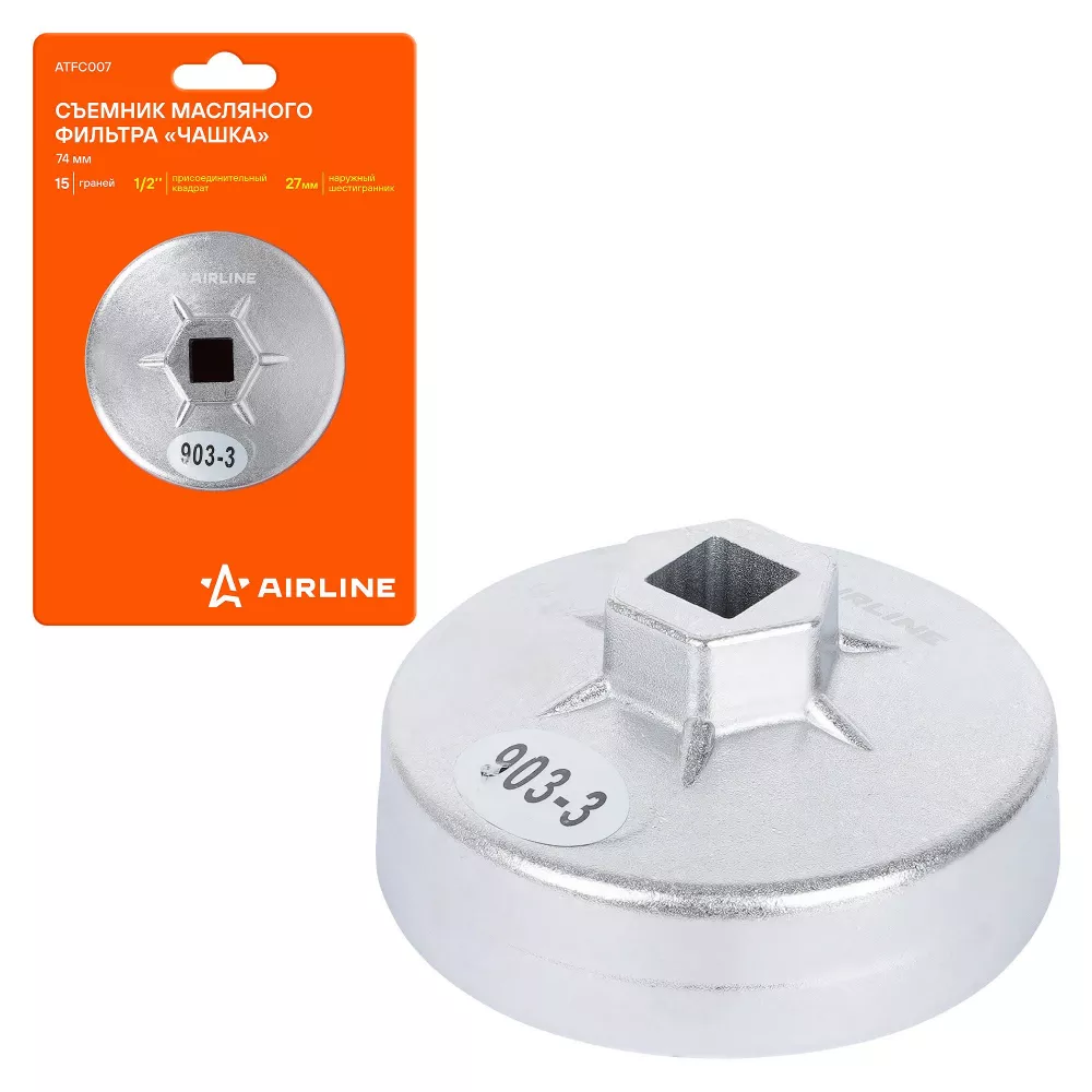 Купить в ATFC007 Съемник масляного фильтра "Чашка" 74мм, 15 граней производитель Airline Выгодные цены и быстрая доставка - Применимость и аналоги - Cкидки и акции