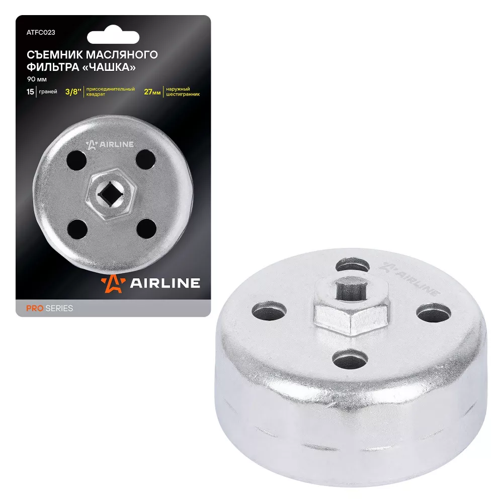 Купить в ATFC023 Съемник масляного фильтра PRO "Чашка" 90мм, 15 граней производитель Airline Выгодные цены и быстрая доставка - Применимость и аналоги - Cкидки и акции