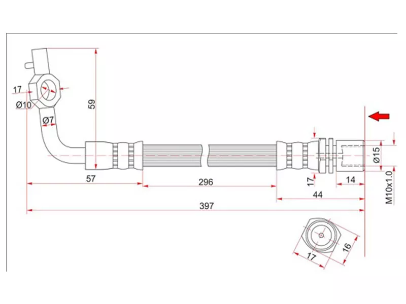Шланг тормозной передний (Таиланд) TOYOTA HIACE/REGIUSACE 89-03 LH
