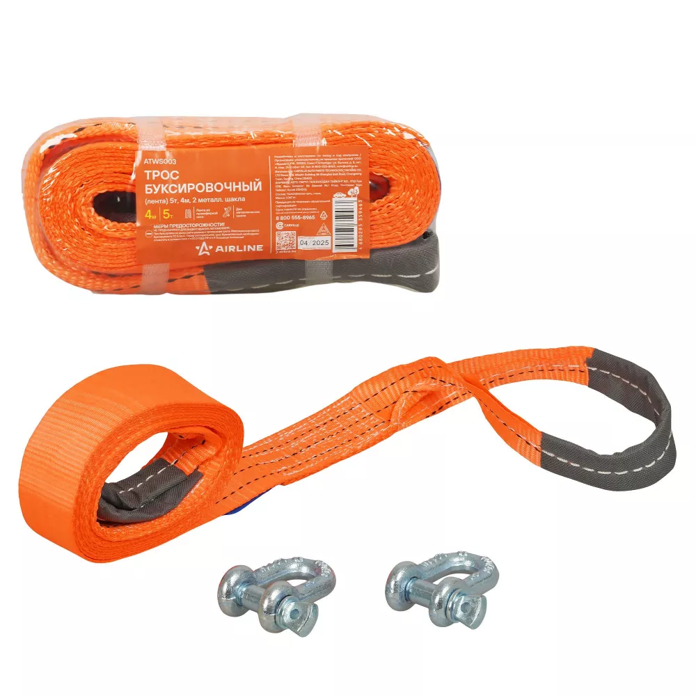 Трос буксировочный (лента) 5т, 4м, 2 металл.шакла