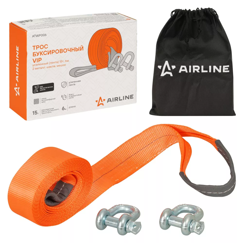 Трос VIP буксировочный усиленный (лента) 15т, 6м , 2 металл.шакла, мешок